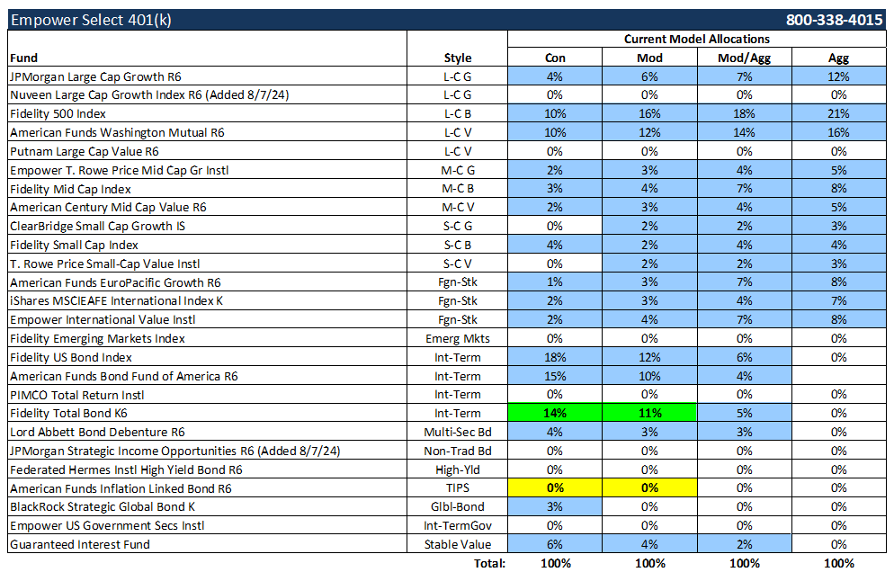 ***Effective 8/7/24, the following investment changes were made***
