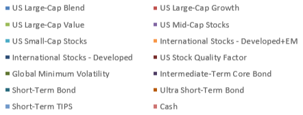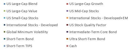 In February, we further reduced our iShares Edge MSCI USA Quality Factor ETF position, which started in November last year, with proceeds going into large-cap value Schwab US Dividend Equity ETF, and in March went into SPDR Portfolio S&P 500 ETF, a process that will continue through the year to further concentrate eSAM Conservative on Core Allocations and continue to support our ultra low-expense mandate to keep eSAM weighted expenses at or under 0.10%. Given the more attractive valuations in stocks created in 2022, we began scaling out of our defensive iShares Edge Minimum Volatility Global EFT allocation in April and reallocating back to US stocks in SPDR Portfolio S&P 500 ETF, though the last 1% will go to our International allocation as we move closer to a neutral International position given the attractive long-term valuations overseas.