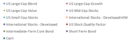 The Stock side of the eSAM Moderate-Aggressive portfolio provided strong gains in 2023 and a welcomed rebound from a rough 2022. Stock markets around the globe began recalibrating the recession risk that prevailed in 2022 early in 2023 as those risks were reduced dramatically. After a very strong start to the year through July, stocks ran into a rough patch in the summer as the "higher for longer" narrative for Fed policy gripped the markets. However, when the Fed pivoted in early November, as noted above, stocks surged in November and December to cap a very good year for stocks overall. Not only did the widely forecasted recession never come, the US economy outperformed expectations all year and GDP hit all-time highs. Those gains extended overseas as well. We bumped up our International exposure about a net 1.5% in May 2023, and included a progressive sale of our iShares MSCI Global Minimum Volatility ETF. We have been slowly moving towards a Neutral International allocation in our eSAM Moderate-Aggressive Account since we started raising International exposure in 2017. We are now just one small move away from Neutral International. International markets remain very attractive from a valuation perspective.