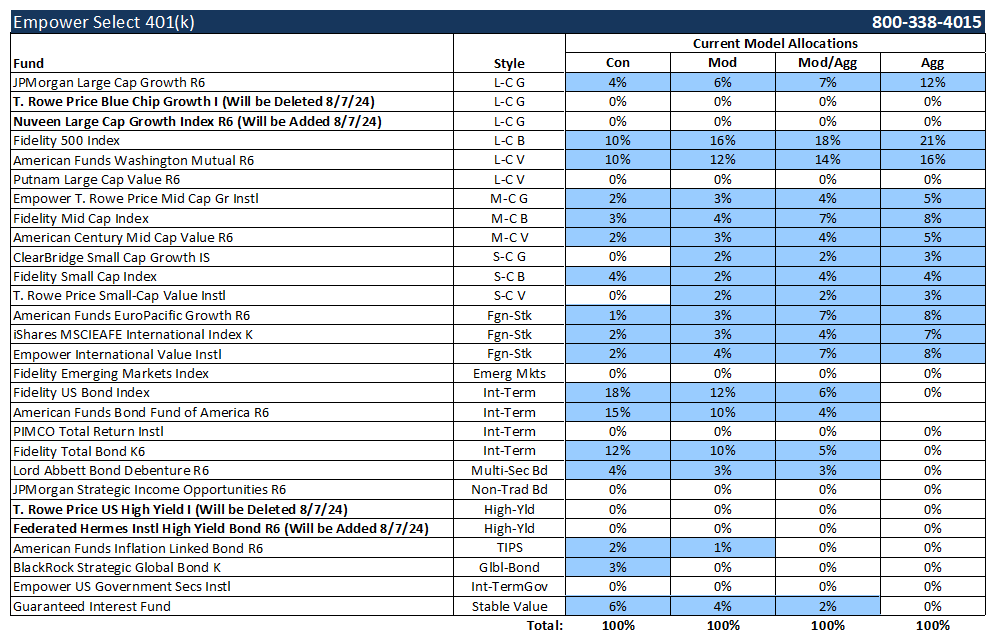 ***Effective 8/7/24, the above highlighted investment changes will be made***